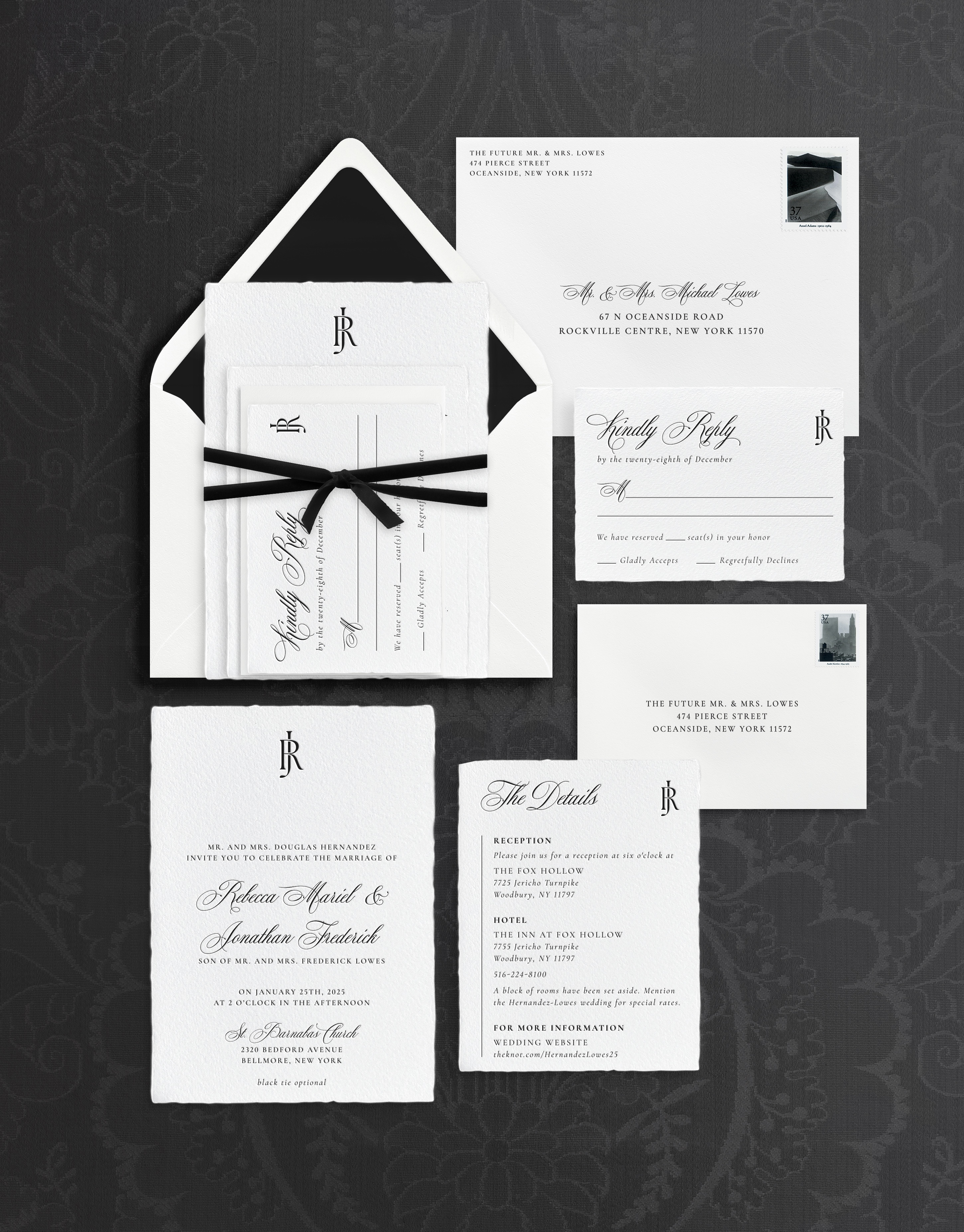 Staying on budget doesn’t mean compromising on your vision. From the very start, I’ll work with you to understand your budget and help you decide on the perfect combination of cards and embellishments, like vellum belly bands or envelope liners, to bring your aesthetic to life while keeping costs in check.